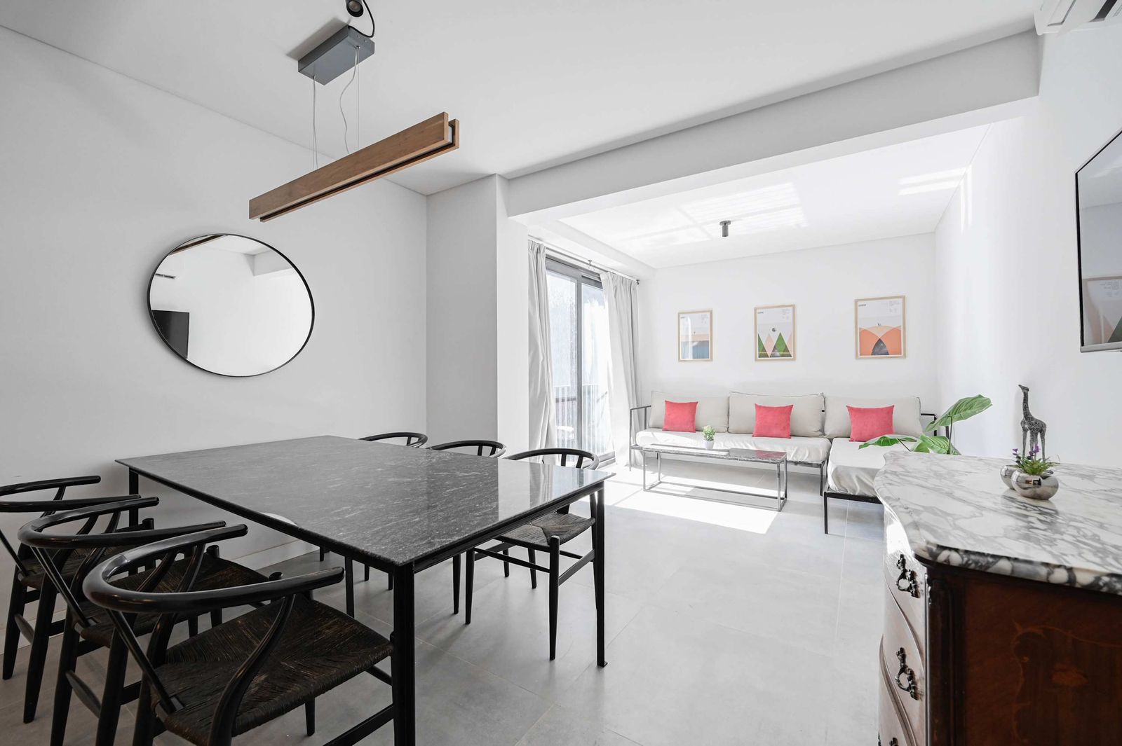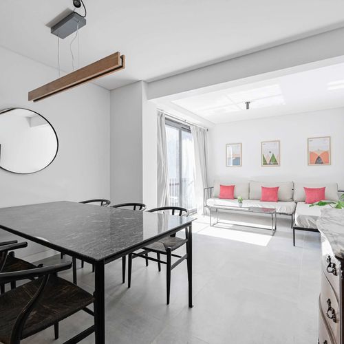 The apartment offers an amazing social space with beautiful views, a very comfortable double sofa bed, dining room and an open kitchen that is fully equipped to prepare your own dished if you choose to stay in.
