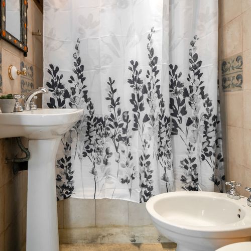 Wide clearance to shower and toilet